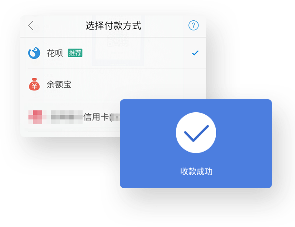 然后付款即可。同时也支持蚂蚁花呗和信 用卡支付